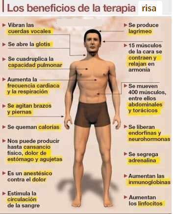 La risa libera endorfinas, un analgésico natural, que nos ayuda a recuperar la alegría, creatividad, entusiasmo y vitalidad juveniles. También es muy eficaz para establecer vínculos y aliviar tensiones grupales a través del juego.